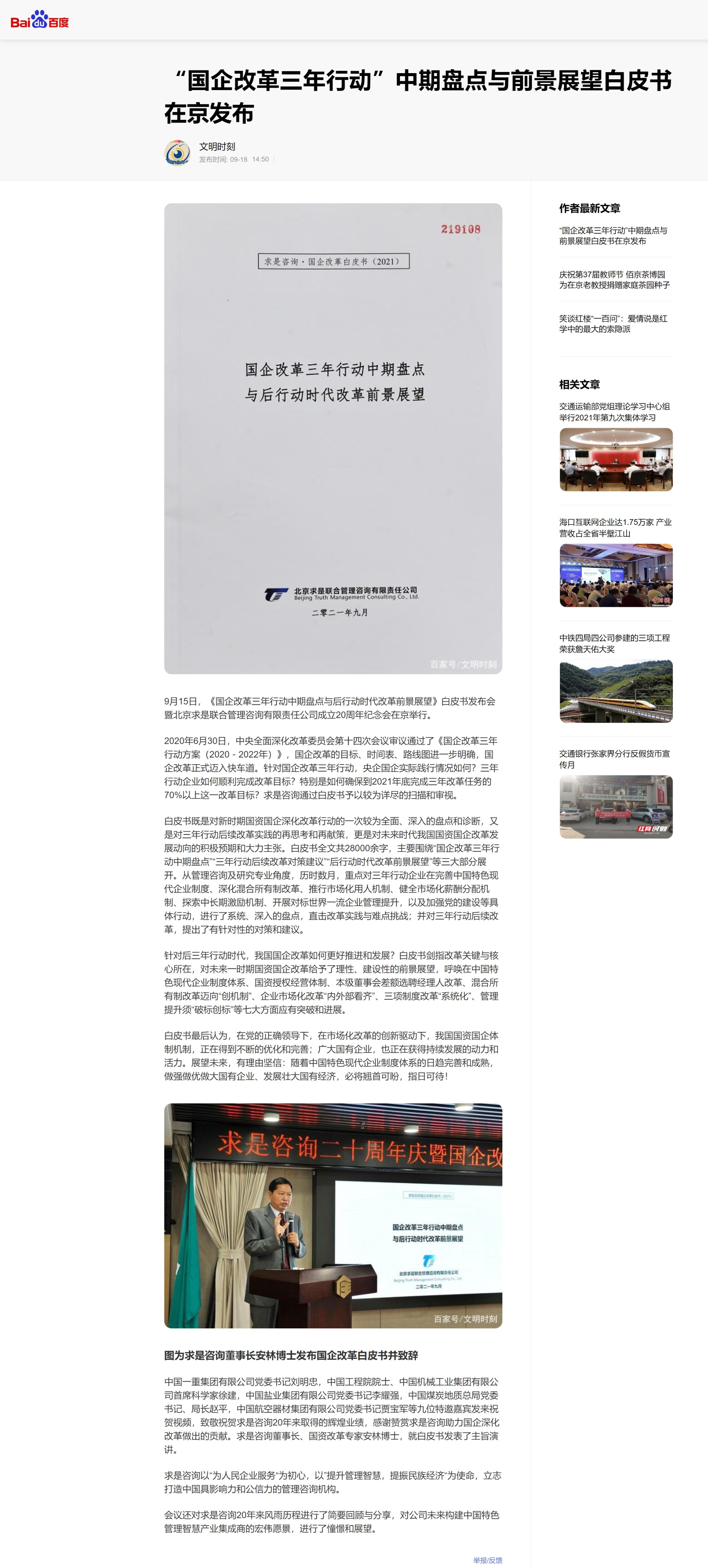 《百度》:“國(guó)企改革三年行動(dòng)”中期盤(pán)點(diǎn)與前景展望白皮書(shū)在京發(fā)布