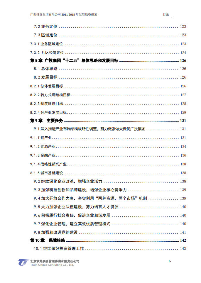 第一部分為廣投集團(tuán)的診斷與回顧,第二部分為廣投集團(tuán)的總體戰(zhàn)略規(guī)劃,第三部分為廣投集團(tuán)專題規(guī)劃;第四部分為廣投集團(tuán)在新戰(zhàn)略下的支撐體系的設(shè)計(jì)。