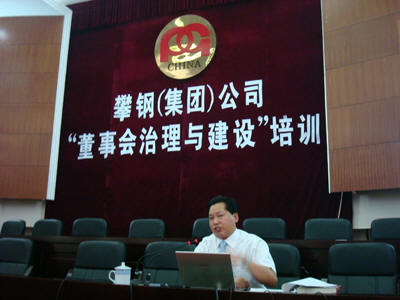 2007年7月17-21日,中央企業(yè)攀枝花鋼鐵(集團(tuán))公司“董事會(huì)治理與建設(shè)”大型董監(jiān)事高管培訓(xùn)班在攀枝花、成都兩市分別舉行,集團(tuán)幾百名管理干部參加受訓(xùn)。(詳見攀鋼日?qǐng)?bào)報(bào)道)