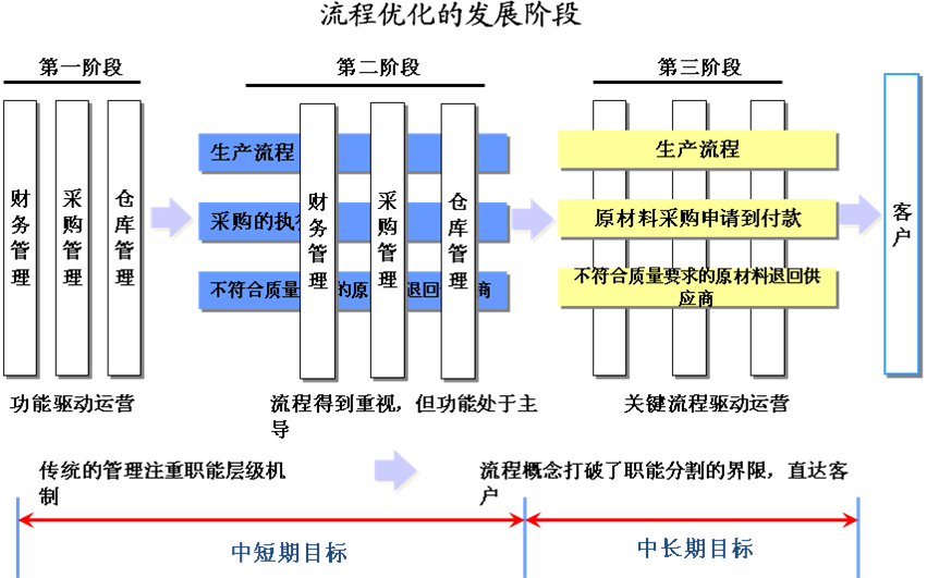 那么,明確、高效的管理流程或業(yè)務(wù)流程可以給企業(yè)帶來巨大收益,可以順應(yīng)市場(chǎng)發(fā)展和客戶的需求、提高企業(yè)管理和為客戶服務(wù)的質(zhì)量與效率、增強(qiáng)對(duì)內(nèi)、對(duì)外反應(yīng)的靈活性、壓縮管理層、界定或重新界定企業(yè)工作的決策路徑、降低企業(yè)或客戶的成本、提升企業(yè)競(jìng)爭(zhēng)力、提高員工士氣等等。