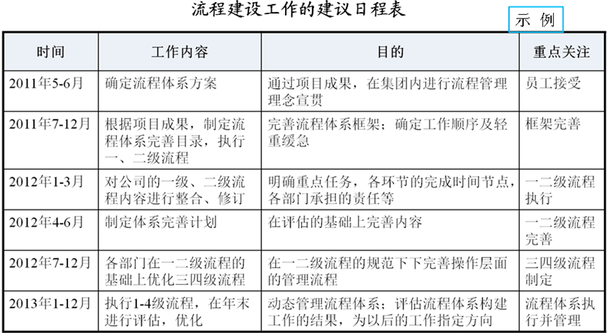 針對(duì)流程內(nèi)容體系的設(shè)計(jì),還應(yīng)統(tǒng)一并規(guī)范流程管理體系,通過明確的分工和職責(zé)界定來強(qiáng)化流程管理理念,優(yōu)化管理手段,提高流程管理效果,最終推動(dòng)公司戰(zhàn)略目標(biāo)的實(shí)現(xiàn)。