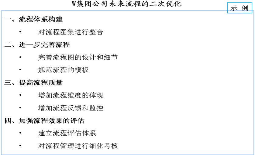 W集團(tuán)未來流程改進(jìn)與優(yōu)化工作安排如下:
